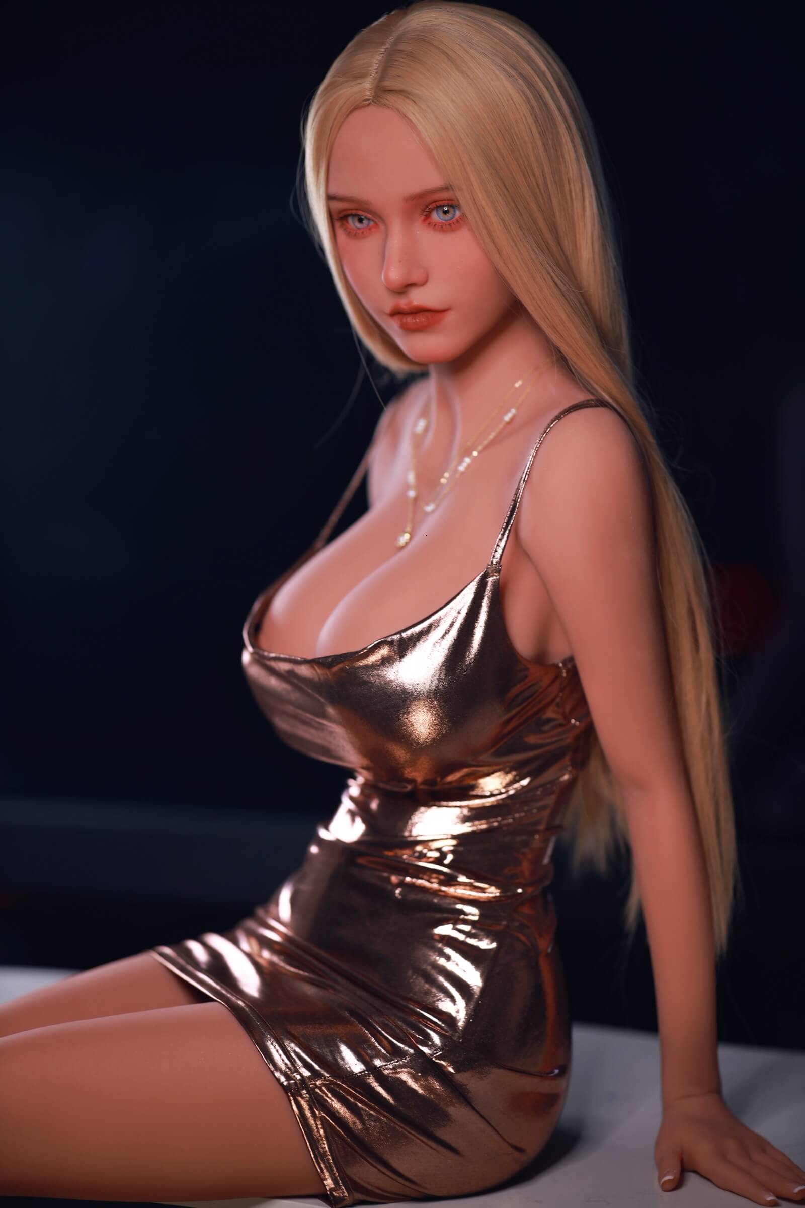 Avec ses yeux bleu clair, ses mèches blondes et sa silhouette prononcée, Mia est une apparition remarquable. Son corps en sablier, sa poitrine généreuse, sa taille fine et ses hanches larges stimulent l'imagination. Et tout cela dans un design étonnamment léger de seulement 29 kg : facile à manipuler, sans compromis sur l'allure.